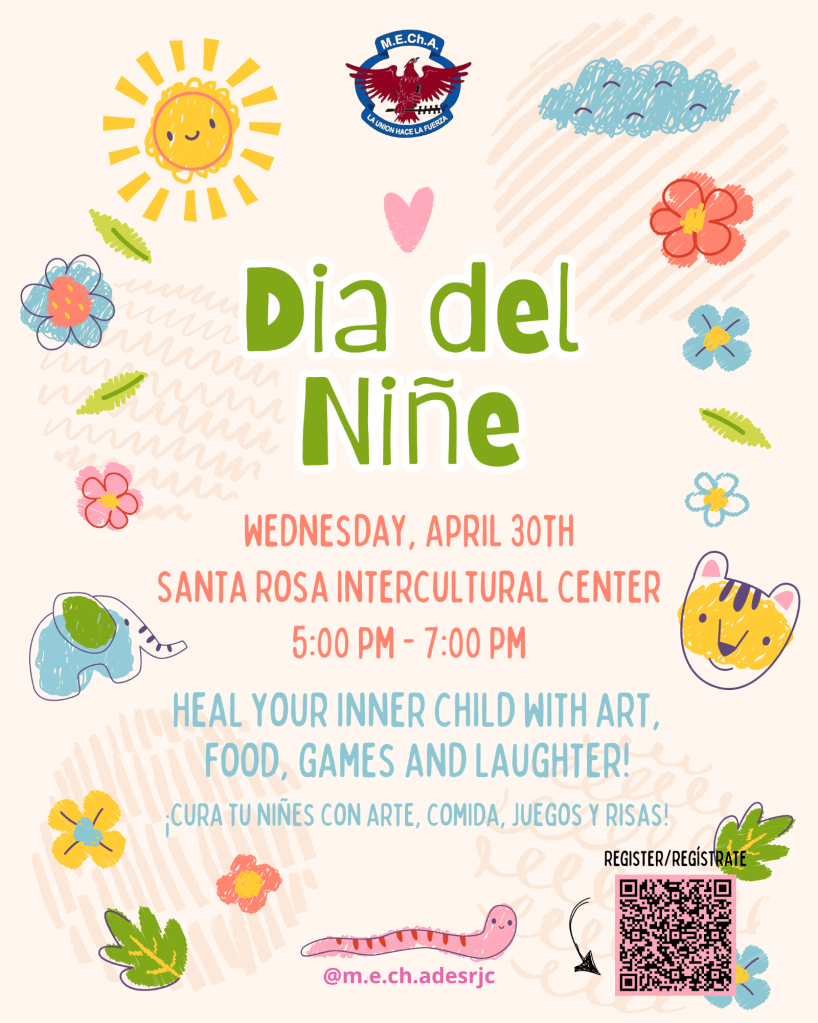 Events/Eventos Dia del Niñe Wednesday, April 30th – Miércoles 30 de Abril 5:00 PM – 7:00 PM Santa Rosa Intercultural Center ReServe your spot/reserva tu lugar Join us!!